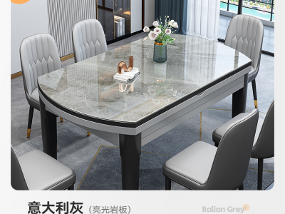 卧家 岩板餐桌椅组合现代简约轻奢伸缩折叠家用小户型实木餐桌吃饭桌