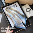 GIAVENTOLA真丝丝巾女春季百搭优雅繁花小方巾桑蚕丝装饰围巾小领巾送长辈 蓝色