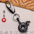 高档汽车钥匙扣男女士腰挂十二生肖平安扣钥匙圈挂件创意生日礼物 天然黑曜石【生肖狗】